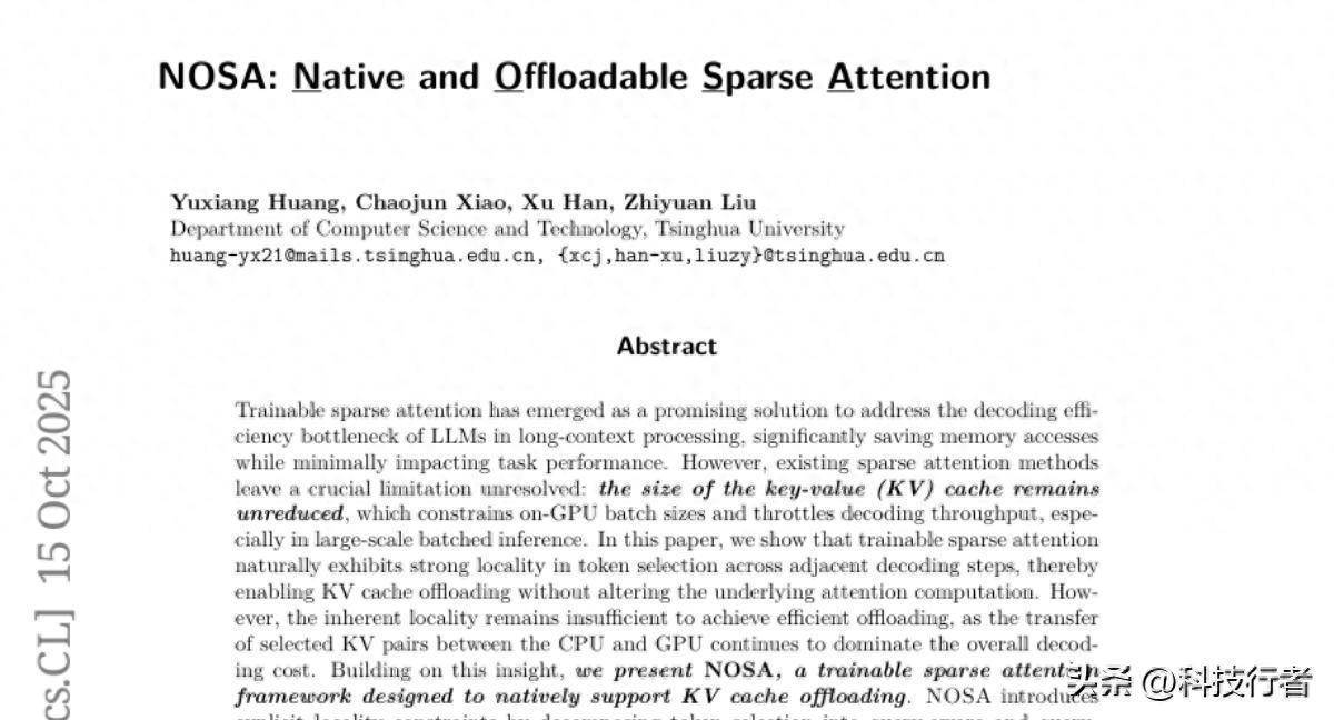 这项由清华大学计算机科学与技术系黄宇翔、肖朝君、韩旭、刘知远团队开展的研究发表于2025年,研究成果以"NOSA: Native and Offloadable Sparse Attention"为题发表在arXiv预印本平台上,编号为arXiv:2510.13602v1。有兴趣深入了解的读者可以通过该编号查询完整论文。